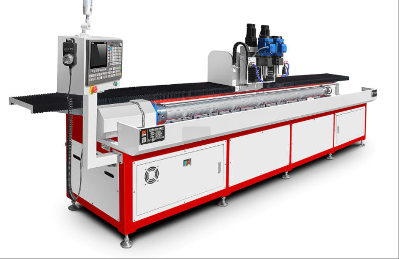 設(shè)備搭載的全伺服驅(qū)動高精度旋轉(zhuǎn)軸系統(tǒng),支持 360° 全角度自動分度加工,突破了傳統(tǒng)鉆孔設(shè)備的空間加工限制。針對圓管類回轉(zhuǎn)體工件,該系統(tǒng)可實現(xiàn) 0.01° 級的角度分辨率,無論是正交直線孔、任意角度斜孔還是空間交叉孔系,均可通過 CNC 編程實現(xiàn)全自動軌跡規(guī)劃,將多工位裝夾的傳統(tǒng)加工模式升級為一次裝夾全工序完成,加工效率提升 60% 以上。